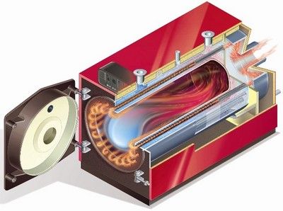 is een ketel met een drietreks rookgas traject en vuurhaard met overgaande vlam met lage temperaturen en condensatie batterij. Respect voor het milieu door een Lage NOx verbranding.